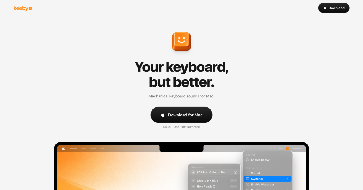 VisitAdds real mechanical keyboard sounds to your MacBook. Every sound is recorded from actual switches with spatial audio, 11 switch profiles, and a reactive visualizer.